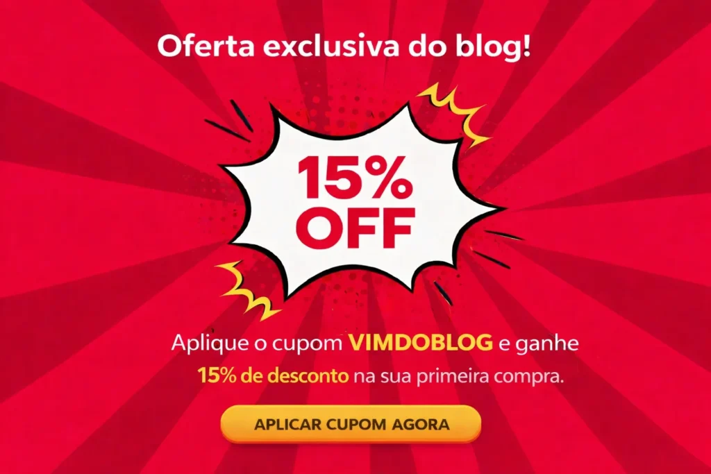 Para aproveitar, é só usar o cupom VIMDOBLOG na hora de finalizar sua compra. Lembre-se: esse desconto é válido apenas para a sua primeira compra e pode ser utilizado uma vez por CPF, então não perca a oportunidade de adquirir aquele item que você tanto queria com um preço super especial!